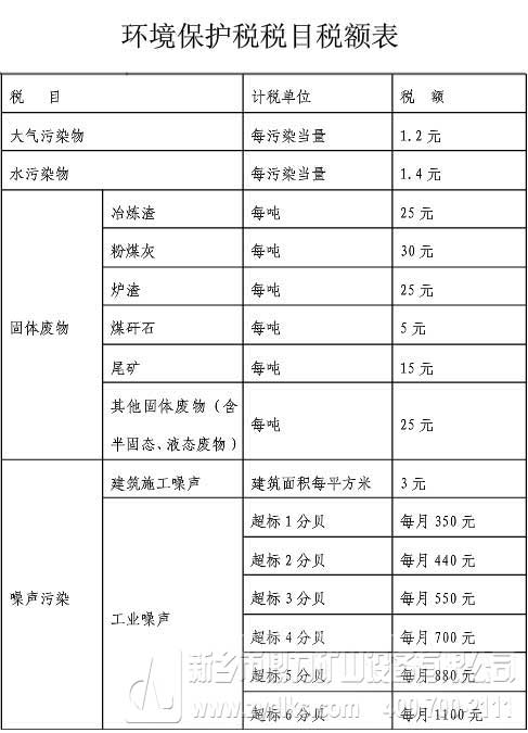 以下是《環保稅法》規定的環保稅征收額表:
