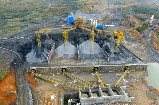 設(shè)備配置:ZGC1550振動(dòng)給料機(jī)+PCZ1615重錘式破碎機(jī)+ZSJ1416雙轉(zhuǎn)子制砂機(jī)+2YKZ2470振動(dòng)篩4臺(tái)+3YKZ3070振動(dòng)篩2臺(tái)