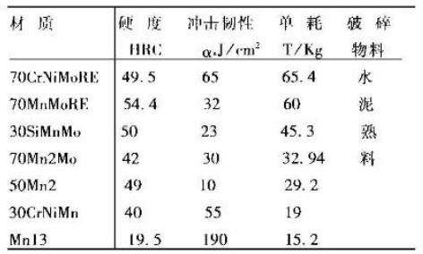 水泥熟料、石英石磨料以切削磨損為主,則選材時要考慮材料的硬度。如以高沖擊的塑性變型或疲勞磨損為主,則要考慮材料的韌性。