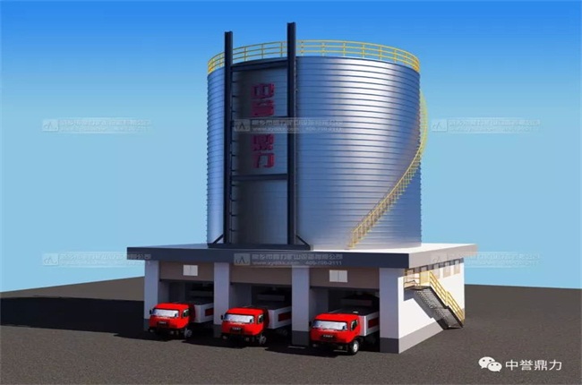 生產(chǎn)線共設(shè)置9個儲料罐,單個存量高達7000噸,配備刷卡自動裝車系統(tǒng),自動完成裝車過程;安裝車輛分離器,防止車輛連續(xù)裝車并裝車速度;設(shè)置除塵器,及時收塵;儲料罐內(nèi)部裝有料位檢測儀,進行實時監(jiān)控。