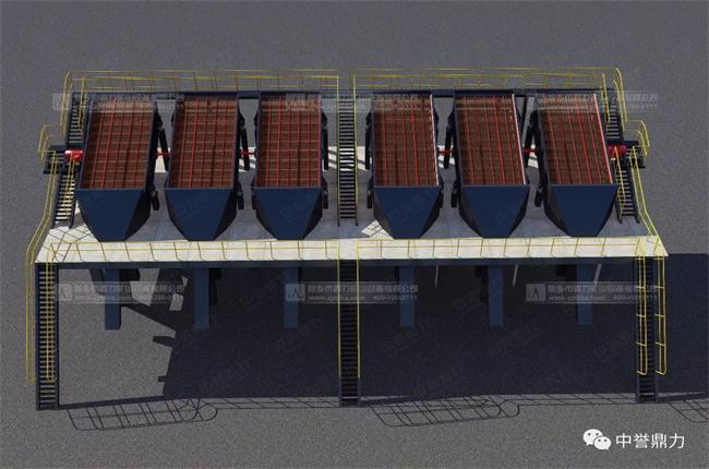 1.3 篩分環(huán)節(jié)采用36臺YKQ系列振動篩,質(zhì)量更輕、能耗更低,處理量更大、運行更平穩(wěn)。三臺振動篩并聯(lián)的設(shè)計,可以使用1臺電機帶動3臺振動篩,單臺功率更低。