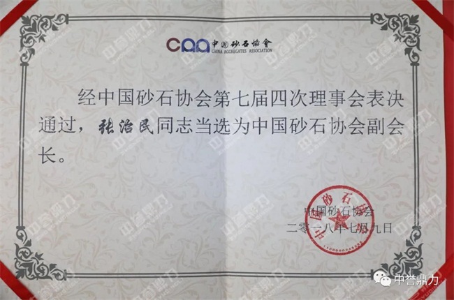 中譽鼎力智能裝備有限公司董事長張治民當選中砂石協(xié)會副會長!