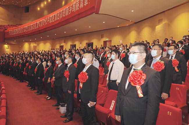 大會開始,場起立,高唱歌。隨后,會議宣讀了《中共新鄉市委關于表彰共產黨員、黨務工作者、基層黨組織的決定》和《表揚“五好”鄉鎮(街道)黨(工)委、“史來賀式好干部”、“吳金印式好干部”的通報》,表彰來自市經濟社會發展各個域的400多名(個)個人和集體。
