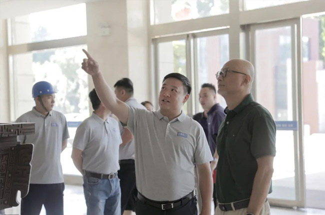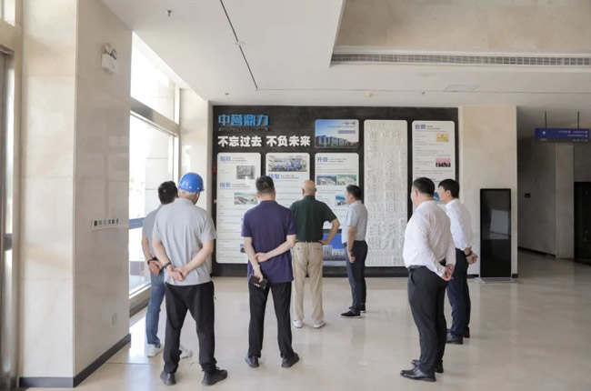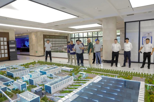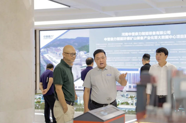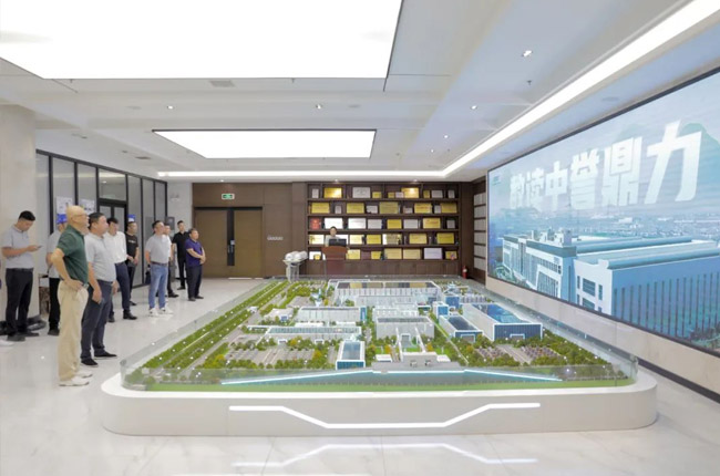 在中譽鼎力智能裝備廠區,砂石骨料網考察團先后參觀了集團發展歷程墻、企業文化墻、綠色建材工業互聯網大數據中心和多位一體循環建材產業園項目沙盤等,對中譽鼎力主營業務及產品服務有了更進一步的了解。