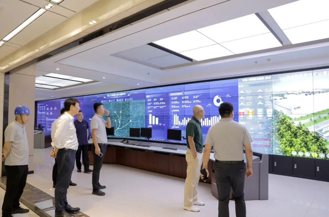 調研活動尾聲,砂石骨料網考察團成員來到中譽鼎力投建運營的衛輝市遠大環保四位一體建材項目現場,實地參觀了生產線的中控中心、制砂車間等,了解項目的智慧生產管理情況。