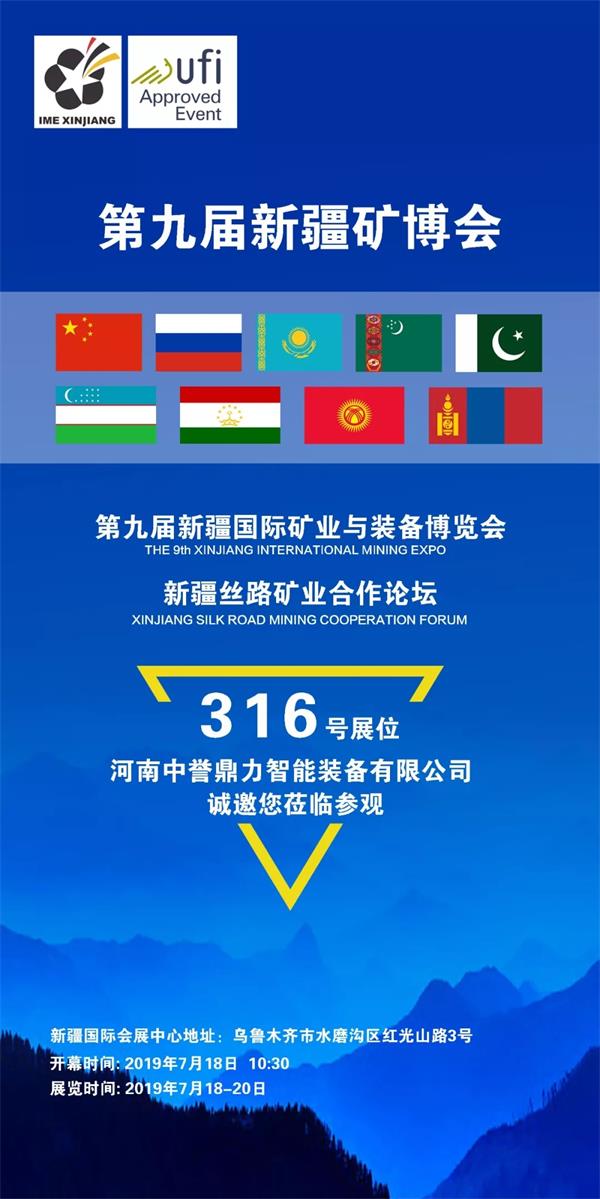 摘要:第九屆新疆礦博會暨新疆絲路礦業合作論壇將于2019年7月18日在新疆際會展開幕,為期三天。河南中譽鼎力智能裝備有限公司為316號展位,邀您蒞臨參觀。
