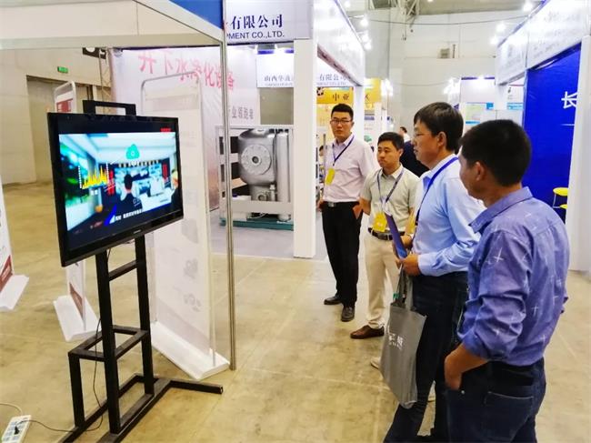 參觀人員觀看中譽(yù)鼎力智能礦山管理系統(tǒng)宣傳片