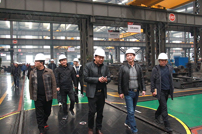 為加快赤壁市礦產資源整合,優化礦山開采布局,推進資源節約集約利用,提高礦產資源保護和利用水平,11月21日,由赤壁市自然資源執法監察大隊大隊長李建、辦公室主任張顯發、教導員孫歐兵等人組成的赤壁市自然資源執法監察大隊考察團一行20余人蒞臨中譽鼎力參觀調研,中譽重工總經理兼銷售總監陳樹凱等人程陪同參觀。