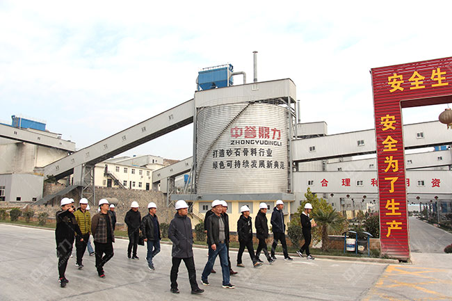 隨后,考察團依次參觀了中譽鼎力EPC總承包建設的時產3000噸骨料生產線和衛輝市藍天環保材料有限公司“骨料+機制砂+干混砂漿+混凝土”四位一體項目,對項目的設計規劃、生產流程等進行了詳細了解。