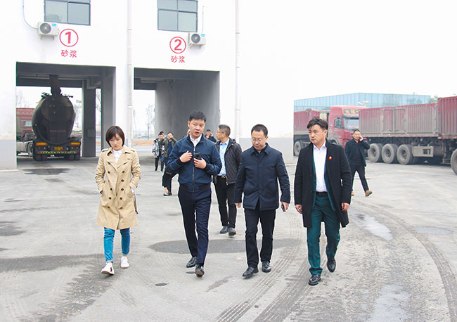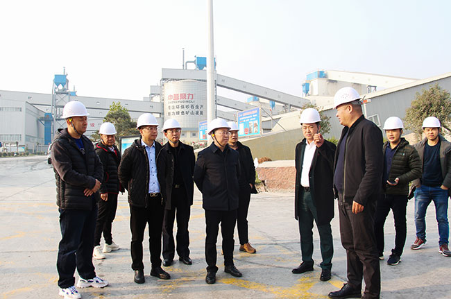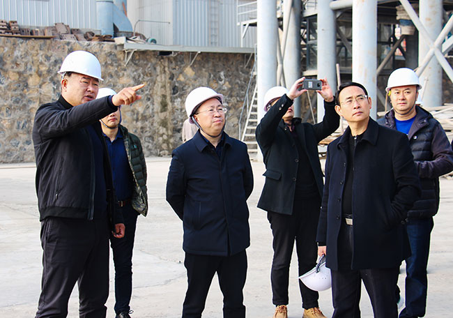 △珙縣縣委導考察團參觀資源有限公司環保生產線,了解生產線的資源整合、礦山開采、大型化環保化生產模式,以及項目的運營情況。