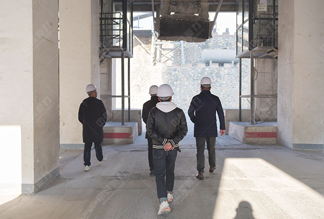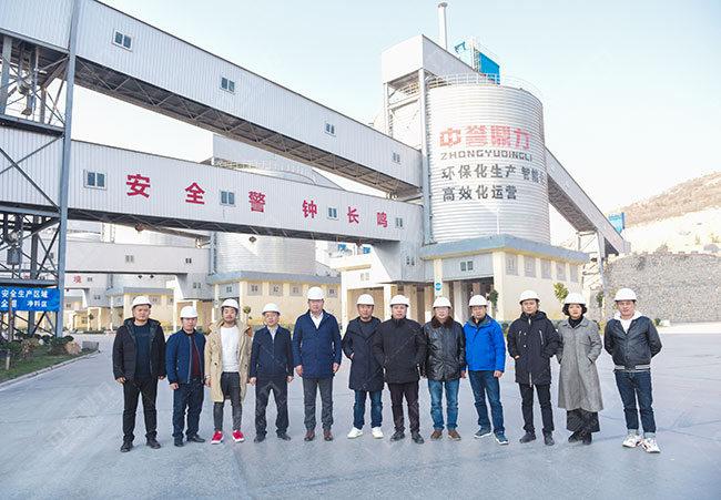 考察團一行先來到由中譽鼎力EPC承建的衛輝市資源有限公司時產3000噸砂石骨料生產線參觀。通過對各生產環節的實地調研,考察團成員對該生產線的設備、工藝和理念有了進一步認識。