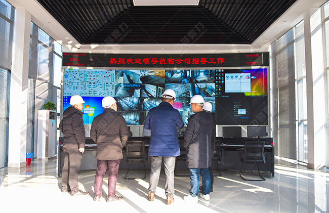 隨后,考察團成員參觀了由中譽鼎力投資建設的衛輝市藍天環保材料有限公司四位一體建材項目,并對該項目的智能化管理模式進行了詳細的了解。