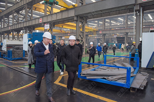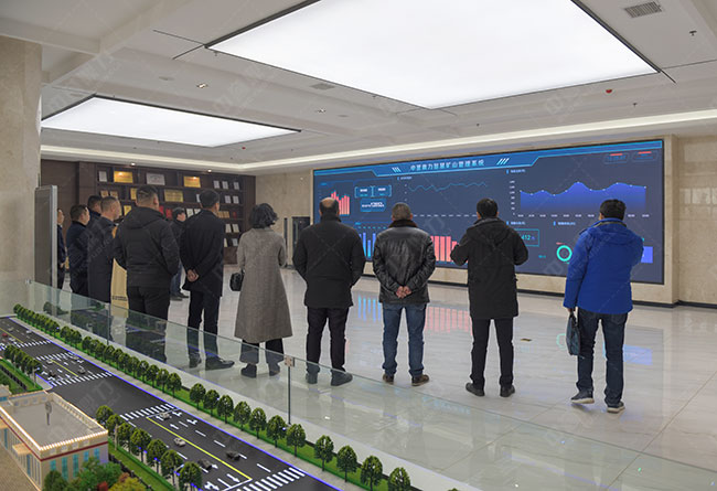 結束對生產線的參觀之后,考察團一行又來到河南中譽鼎力智能裝備有限公司,實地參觀了中譽鼎力智能化展示、數據和中譽鼎力智能化一體生產車間,深入了解公司在智能礦山管理系統研發、環保礦山設備制造等方面的發展情況。