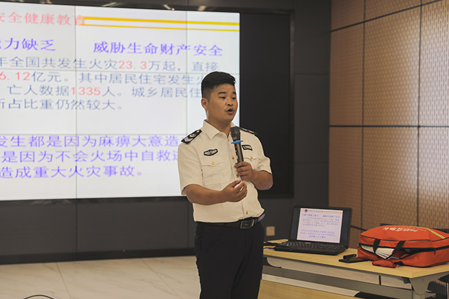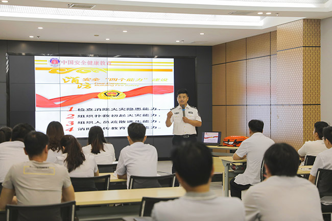 在之后的消防安知識培訓(xùn)講座上,張?zhí)m濤教官從實(shí)際案例出發(fā),圍繞消防安“四個(gè)能力建設(shè)”、應(yīng)急處置程序和逃生技巧等內(nèi)容進(jìn)行了詳細(xì)而具體的講解。