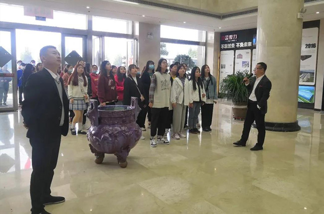 10月19日上午,在新鄉(xiāng)學(xué)院經(jīng)濟學(xué)院副院長郭玉杰、衛(wèi)輝市商務(wù)局副局長翟愛民的帶下,新鄉(xiāng)學(xué)院經(jīng)濟學(xué)院60名大學(xué)生到中譽鼎力進行參觀交流。