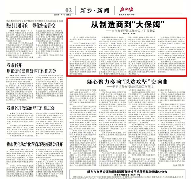 1月7日,《新鄉(xiāng)日報》在二版頭題位且刊發(fā)了《從制造商到“大保姆”》一文,報道了中譽(yù)鼎力從單一的礦山設(shè)備制造商發(fā)展成涉及建材域上下游產(chǎn)業(yè)的“大保姆”的轉(zhuǎn)型歷程。市委導(dǎo)對中譽(yù)鼎力實(shí)現(xiàn)制造業(yè)與現(xiàn)代服務(wù)業(yè)融合發(fā)展的數(shù)字化經(jīng)濟(jì)發(fā)展思路表示。