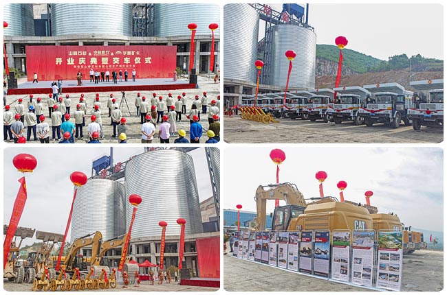 當天,山峰石材有限公司總經理田闊、副總經理李秀軍、秦少懷、楊文平作為項目投資運營方代表,中譽鼎力黨建指導員王士存、中譽鼎力銷售公司省級經理潘文周、張藝賓作為項目施工承建方和設備供應商代表,宇通華北大區總經理劉寶柱作為項目礦用自卸車供應商代表及相關負責人出席現場,項目工人和中譽鼎力安裝隊共計百余人參加活動。