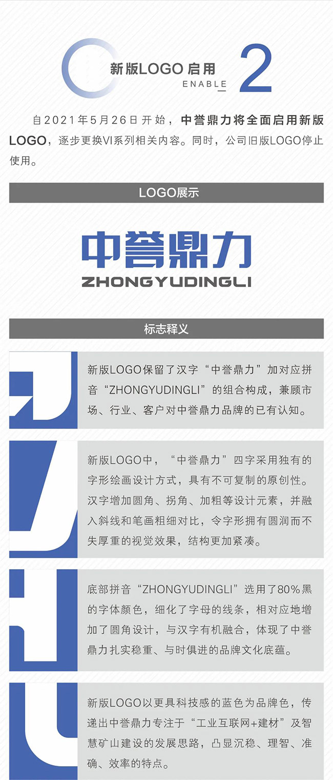 摘要:為配合公司整體戰(zhàn)略和發(fā)展規(guī)劃,不管強(qiáng)化公司的形象和影響力,進(jìn)一步增進(jìn)公司LOGO的識(shí)別性和傳播效果,中譽(yù)鼎力形象及LOGO進(jìn)行新升級(jí)調(diào)整。