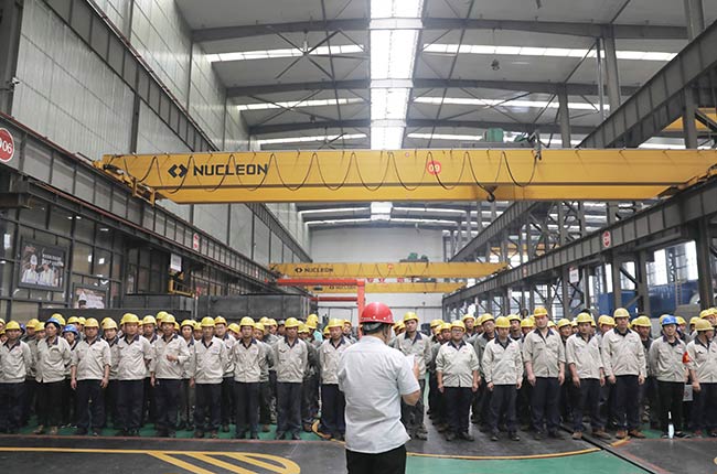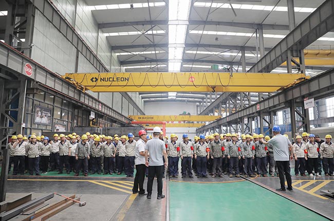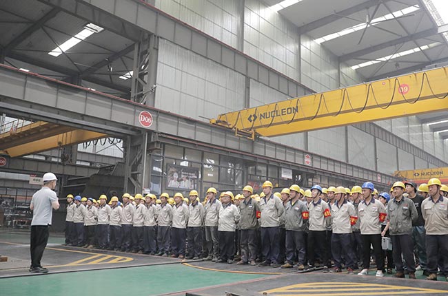 車間所有員工迅速集合并清點人數,現場進行點評和總結