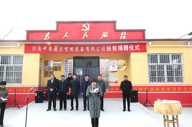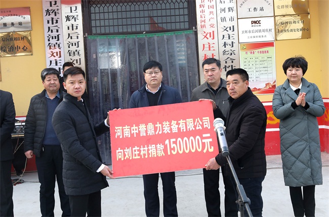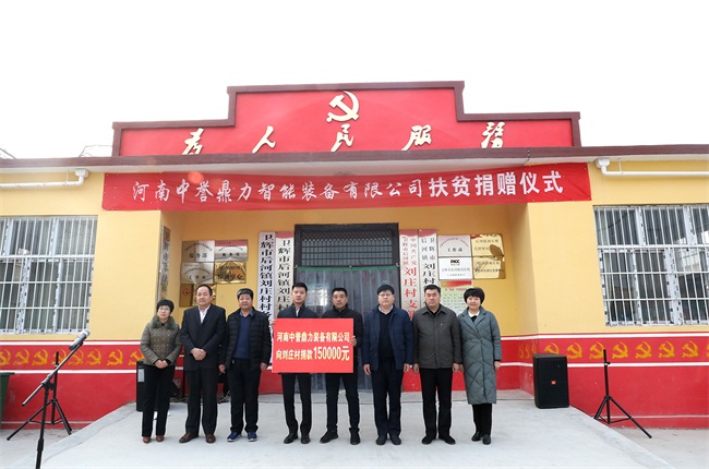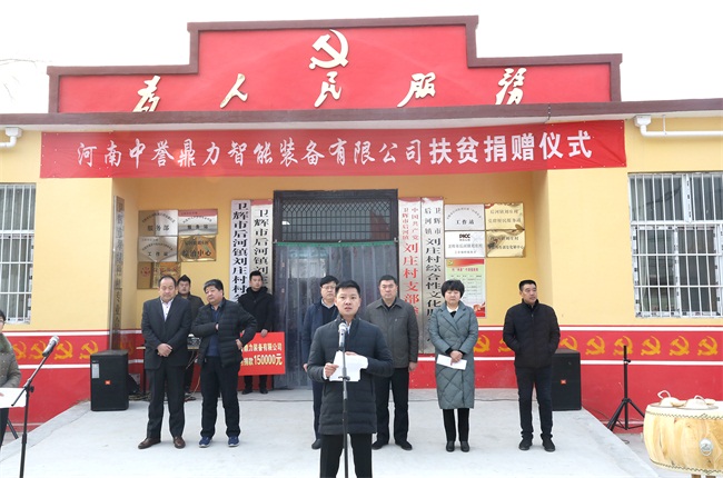 河南中譽鼎力智能裝備有限公司董事長張治民發(fā)表講話:“中譽鼎力作為土生土長的衛(wèi)輝企業(yè),離不開的關(guān)心和百姓的支持。公司牢記社會責(zé)任,積響應(yīng)扶貧工作,落實‘企業(yè)分包貧困村’政策,與后河鎮(zhèn)劉莊村結(jié)對幫扶。經(jīng)公司研究決定,河南中譽鼎力智能裝備有限公司此次向劉莊村捐款15萬元,主要用于劉莊村的基礎(chǔ)設(shè)施建設(shè)。”