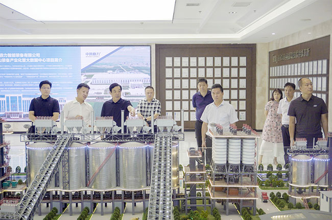 在河南中譽鼎力智能裝備有限公司,調研組一行先參觀了中譽鼎力多位一體循環建材產業園項目沙盤,并觀看了中譽鼎力企業宣傳片,對公司綠色建材項目承建運營及主要業務情況等有了進一步了解。