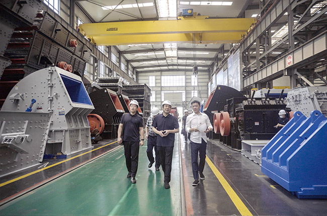 隨后,調研組一行來到中譽鼎力智能化一體生產車間,詳細了解設備研發、生產線建設運營、管理系統開發推廣等情況。
