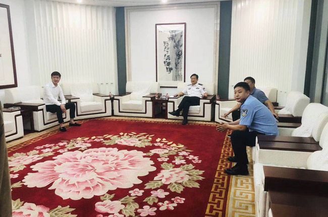 新鄉市公安局黨委委員、警令部主任王宗仁一行蒞臨中譽鼎力考察調研,中譽鼎力智能裝備有限公司董事長張治民程陪同。
