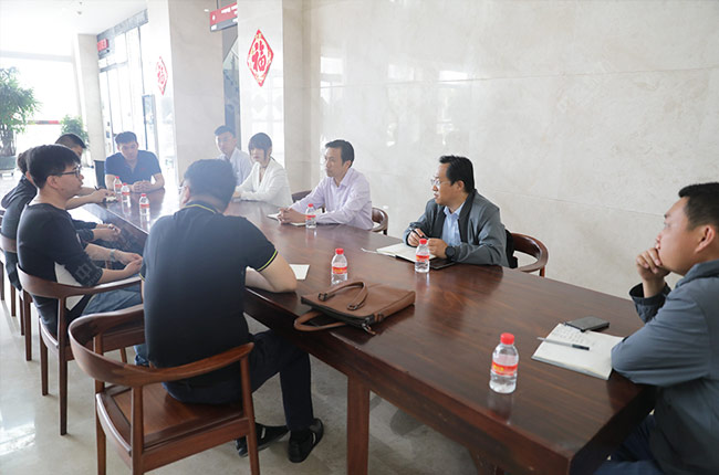 雙方結合破碎機錘頭磨損的檢測需求、成品料無人裝車需求、礦山智能管理大數據需求等主題內容進行了深入的技術探討與溝通交流,為二者達成進一步合作、共同推動科技創新成果轉化創造了良好契機。