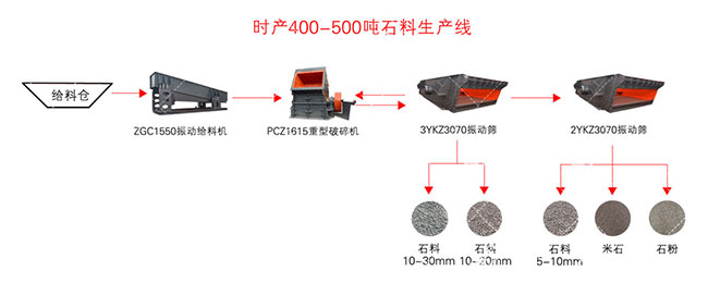 時(shí)產(chǎn)500噸石灰石錘式粉碎機(jī)生產(chǎn)線流程