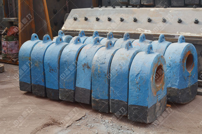 1)當(dāng)破碎物料的粒度較大時(shí),錘頭所承受的沖擊載荷也較大,因此,應(yīng)選擇合金的高強(qiáng)高錳鋼,其韌性可安使用;
