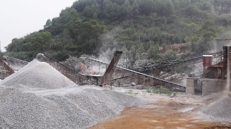 這條時產(chǎn)300噸的石灰石碎石生產(chǎn)線流程:先石料經(jīng)粗破設(shè)備進(jìn)行初步破碎,然后再將產(chǎn)出的物料經(jīng)由細(xì)碎設(shè)備,進(jìn)行再次的破碎,經(jīng)過振動篩篩分成兩種物料,一部分篩分成可以滿足石子大小粒度的成品料,另一部分可以篩分成符合制砂要求的成品料,然后制成成品砂進(jìn)行銷售。