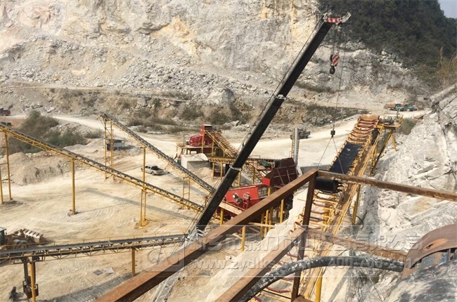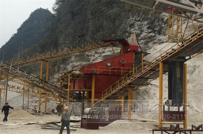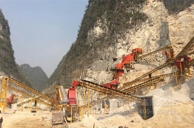 上圖為時產800噸碎石生產線的生產現(xiàn)場,依托山勢將山石進行破碎,不僅利用了當?shù)氐馁Y源,而且減少了物料輸送過程中的能源消耗,生產效率大大提高。