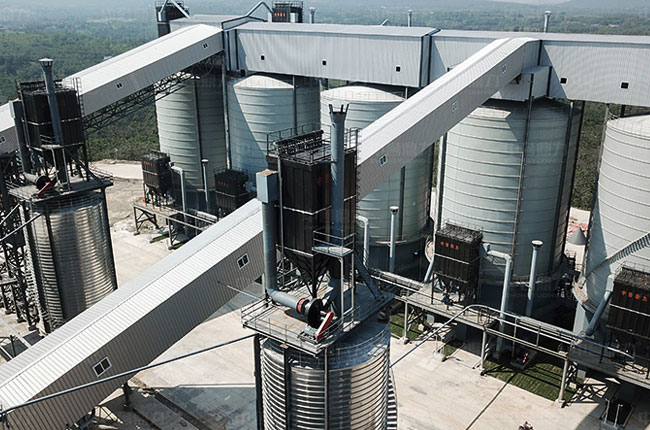 特點二:成品料分別儲存于5座圓形儲料倉內,各倉底均設有自動裝車系統和稱重系統;
