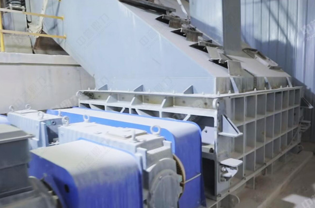 1、原料處理:共用歐版顎破初碎后進入中轉倉