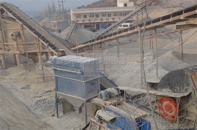 上圖是石料生產(chǎn)線生產(chǎn)現(xiàn)場,生產(chǎn)線上選用了我們公司生產(chǎn)的DMCA除塵器設(shè)備,可以用以吸收石料生產(chǎn)線中產(chǎn)生的粉塵,凈化了整體生產(chǎn)環(huán)境。