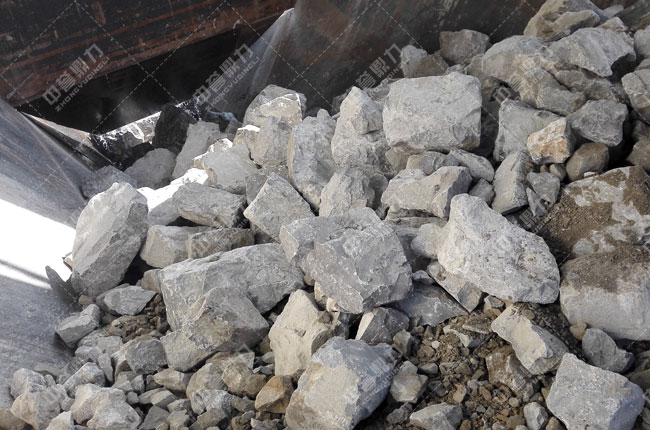 粗碎——原料經振動給料機均勻的送到重型錘式反擊破碎機PCZ1615進行加工破碎
