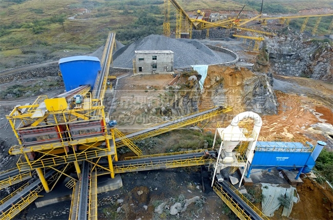 從時產500噸石灰石制砂生產線圖集上我們可以看到,在生產線上各除塵點配置了DMCA型礦山除塵器和礦山振動篩,經過至少兩次篩分的過程,可以達到終篩分的,再進入到下一道生產程序中,DMCA型礦山除塵器,可以將石料生產中粉塵吸收率提高到90%以上。