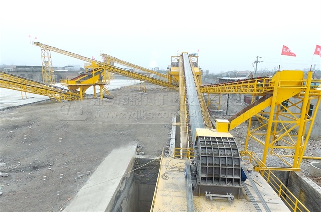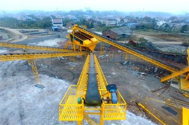 整條生產線設備配置合理,另外原材料從基臺進入,所有生產過程均是通過皮帶輸送帶傳輸完成的,封閉的輸送環境可以大大減少粉塵逸散的幾率,與遠處的傳統石料生產線相比,具有很大的之處!