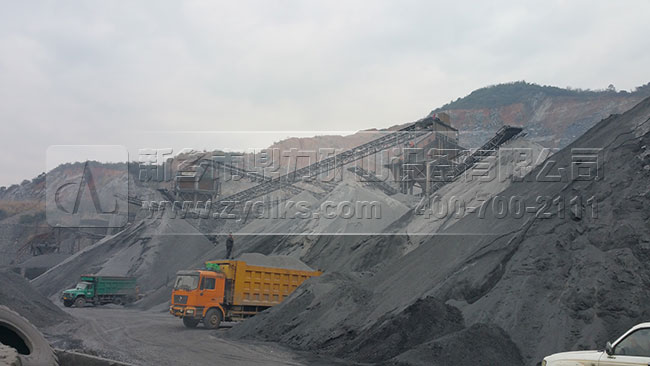 時產400-500噸砂石料生產線配置方案:PCZ1615重型錘式破碎機、ZG1528振動給料機、3YKZ2670振動篩等等
