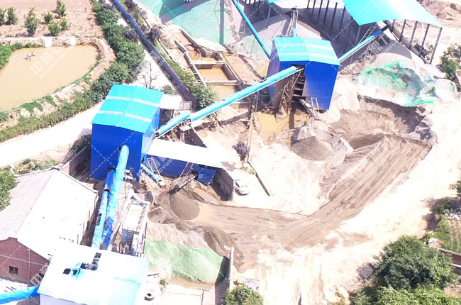 從現場圖片來看,該石渣生產線對環保還是比較重視的。除了采用封閉式安裝外,主要揚塵點還配備了脈沖袋式除塵器,這與當地砂石行業向環保化發展的大趨勢吻合。