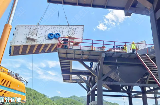 · 破碎后物料進入振動篩進行加水預篩分:
