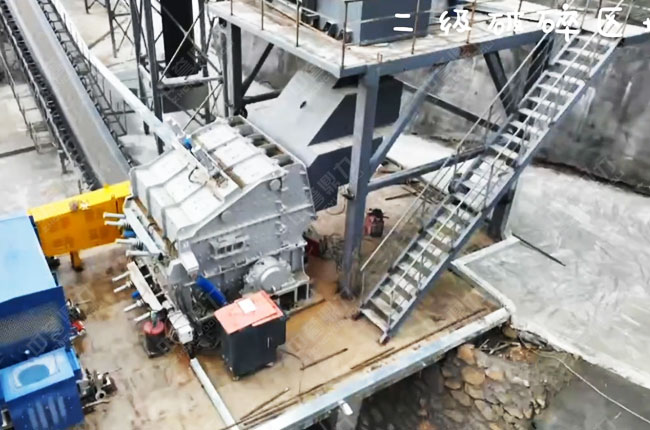 · 粗碎后物料經皮帶輸送至反擊破碎機二次破碎。