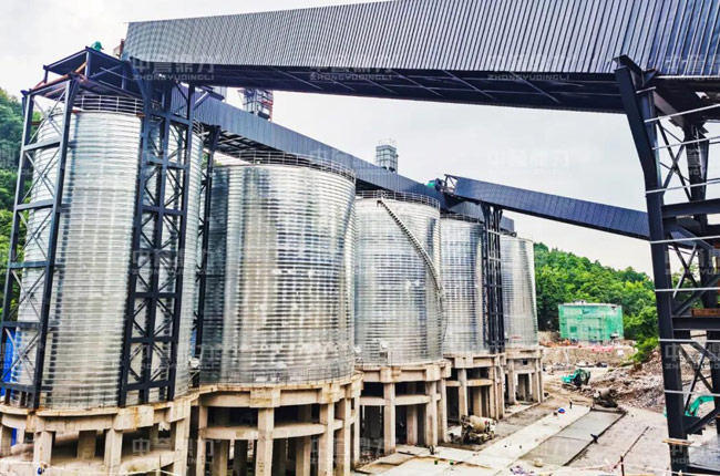 2、建設封閉鋼板筒倉5座,避免石料露天堆放造成粉塵污染;筒倉配備刷卡自動裝車系統,頂部安裝除塵器,對裝車過程實時收塵,防止粉塵溢出;