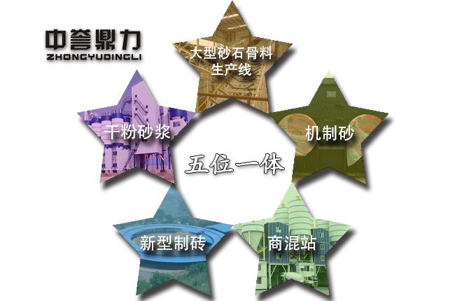 大型砂石骨料生產線—機制砂—商混站—制磚—干粉砂漿五位一體的發展模式,作為砂石骨料生產行業內的企業—邢臺中聯水泥建材園,正是采用了此種發展模式,在發展砂石骨料生產線的基礎上,發展其他產業生產,并且在五位一體的發展模式中一個生產環節中都實現、零排放、零廢料,真正實現了與其他產業鏈的融合,并且解決了石料生產線上產生的廢料如何處理這一個環保難題。