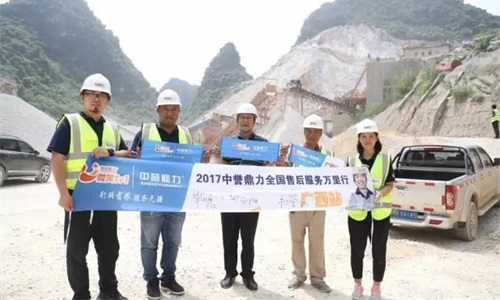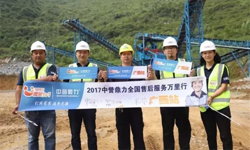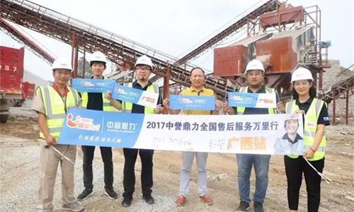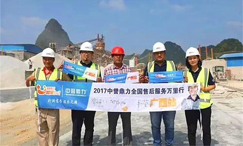 第一站桂林市獨石山采石場微笑1+1中譽鼎力2017售后服務萬里行活動湖南站已經(jīng)圓滿結(jié)束。離開了湘楚湖南,售后萬里行團隊又趕赴美麗廣西。于9月12日,中譽鼎力廣西售后服務萬里行從獨石山采石場正式起航! 此次售后萬里行,團隊成員將深入廣西區(qū)域砂石骨料生產(chǎn)線現(xiàn)場,為我公司客戶提供