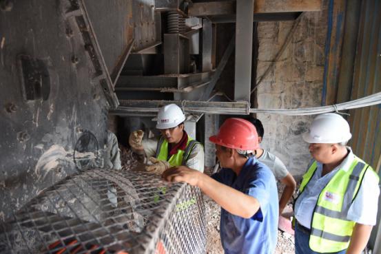 現(xiàn)場,鼎力安裝工程師、銷售經(jīng)理、售后服務(wù)經(jīng)理了解到該生產(chǎn)線的產(chǎn)量沒有達(dá)到設(shè)備時(shí)產(chǎn)量時(shí),立即開始檢測設(shè)備、查找原因。經(jīng)過查看用戶的破碎原材料,發(fā)現(xiàn)原材料里含有硅巖,加劇了破碎機(jī)錘頭磨損程度,進(jìn)而影響產(chǎn)量。建議在破碎前將硅巖層剝離掉,避免錘頭磨損嚴(yán)重的情況再次出現(xiàn)。
