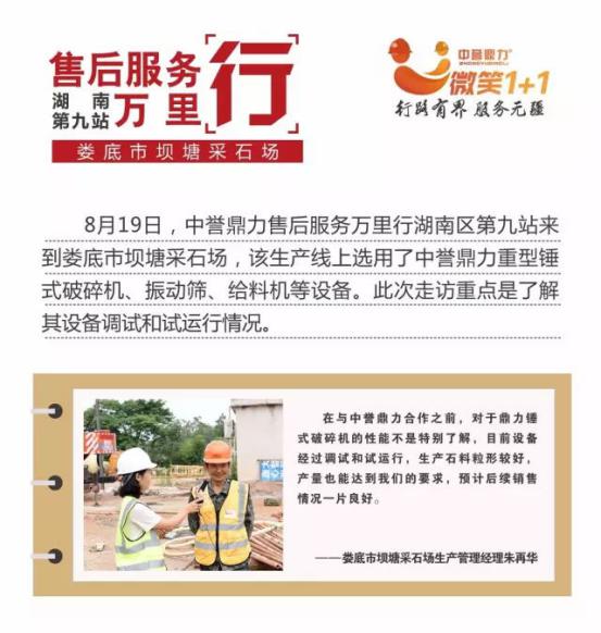 設備品質是企業生存的基礎,中譽鼎力會繼續致力于礦山破碎設備的研發和生產,不斷了解用戶使用感受,聽取用戶意見和建議,跟進生產線產量和質量,推出更、更節能的新設備,為用戶順利生產提供設備保障!