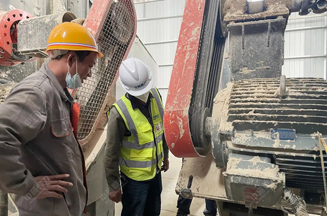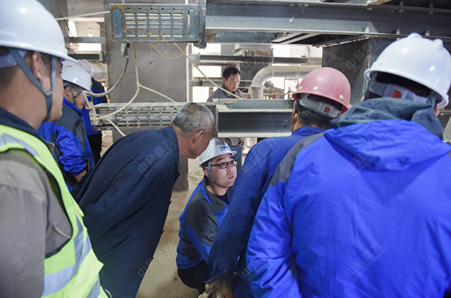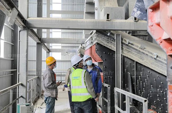 聽完項目負責人尚總對項目的情況介紹后,售后服務萬里行團隊一行來到時產1000噸石子生產線現場,對設備使用情況進行詳細排查與維修。