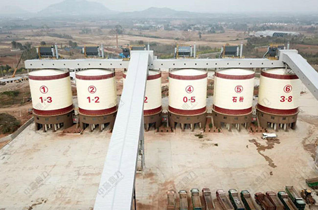 該生產(chǎn)線從入料到終成品料出料程封閉,嚴(yán)格按照“密閉破碎—密閉輸送—密閉篩分—密閉輸送入庫(kù)”的流程進(jìn)行,避免粉塵外溢,不同規(guī)格成品料通過(guò)密閉輸送帶進(jìn)入相應(yīng)規(guī)格的6座封閉成品料鋼板儲(chǔ)料倉(cāng),實(shí)現(xiàn)環(huán)保生產(chǎn)。每種規(guī)格石料的成品倉(cāng)下設(shè)卸料口,運(yùn)用中譽(yù)鼎力稱重系統(tǒng)、裝車系統(tǒng)和銷售系統(tǒng)進(jìn)行智能化、無(wú)人化的裝車銷售,、環(huán)保、安,節(jié)省人力,降本增效。