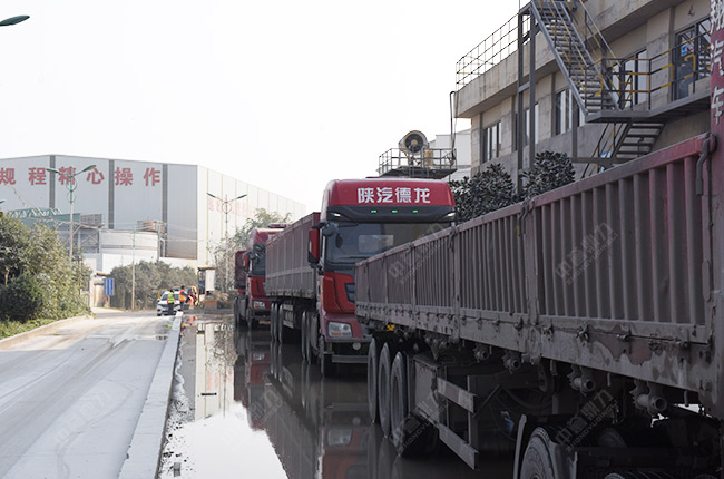 入料口外采用霧炮機、噴淋幕簾降塵、下料棚內(nèi)及下料口有線狀噴霧裝置噴淋;出場運輸車輛利用洗車通道、灑水車、掃路機等進行不間斷降塵除塵。